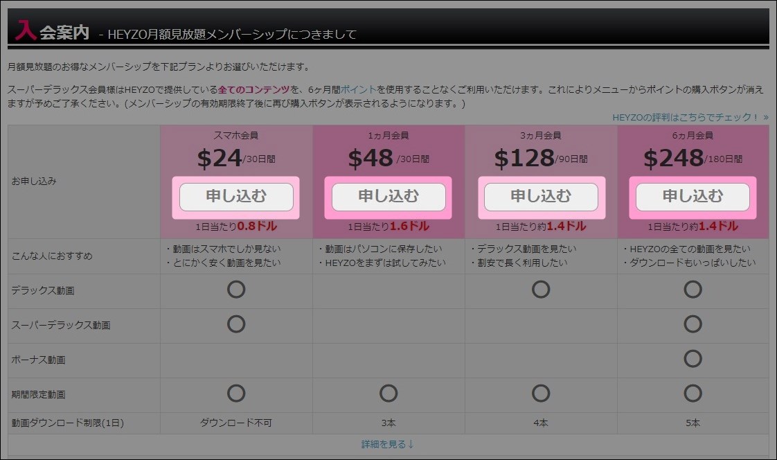 他サイトのスマホ会員と違うのは、HEYZOのスマホ会員は一般からスーパーデラックス動画までの全ての動画が視聴可能という点です。
